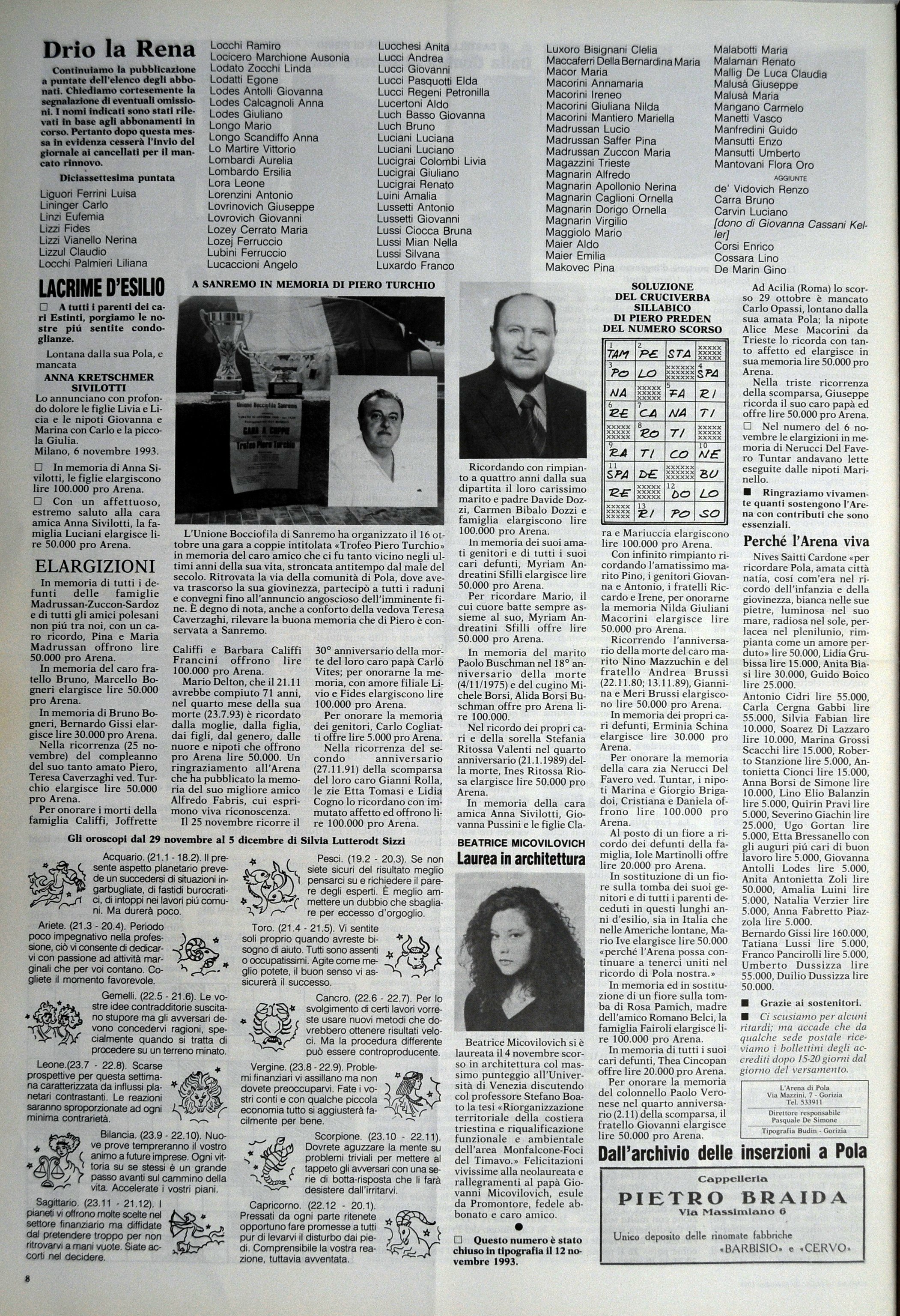 Beatrice Micovilovich si e laureata il 4 novembre scorso in architettura col massimo punteggio all'Università. di Venezia discutendo col professore Stefano Boato la tesi .Riorganizzazione territoriale della costiera triestina e riqualificazione funzionale e ambientale dell'area Monfalcone-Foci del Timavo.. Felicitazioni vivissime alla neolaureata e rallegramenti al papa Giovanni Micovilovich, esule da Promontore, fedele abbonato e caro amico.