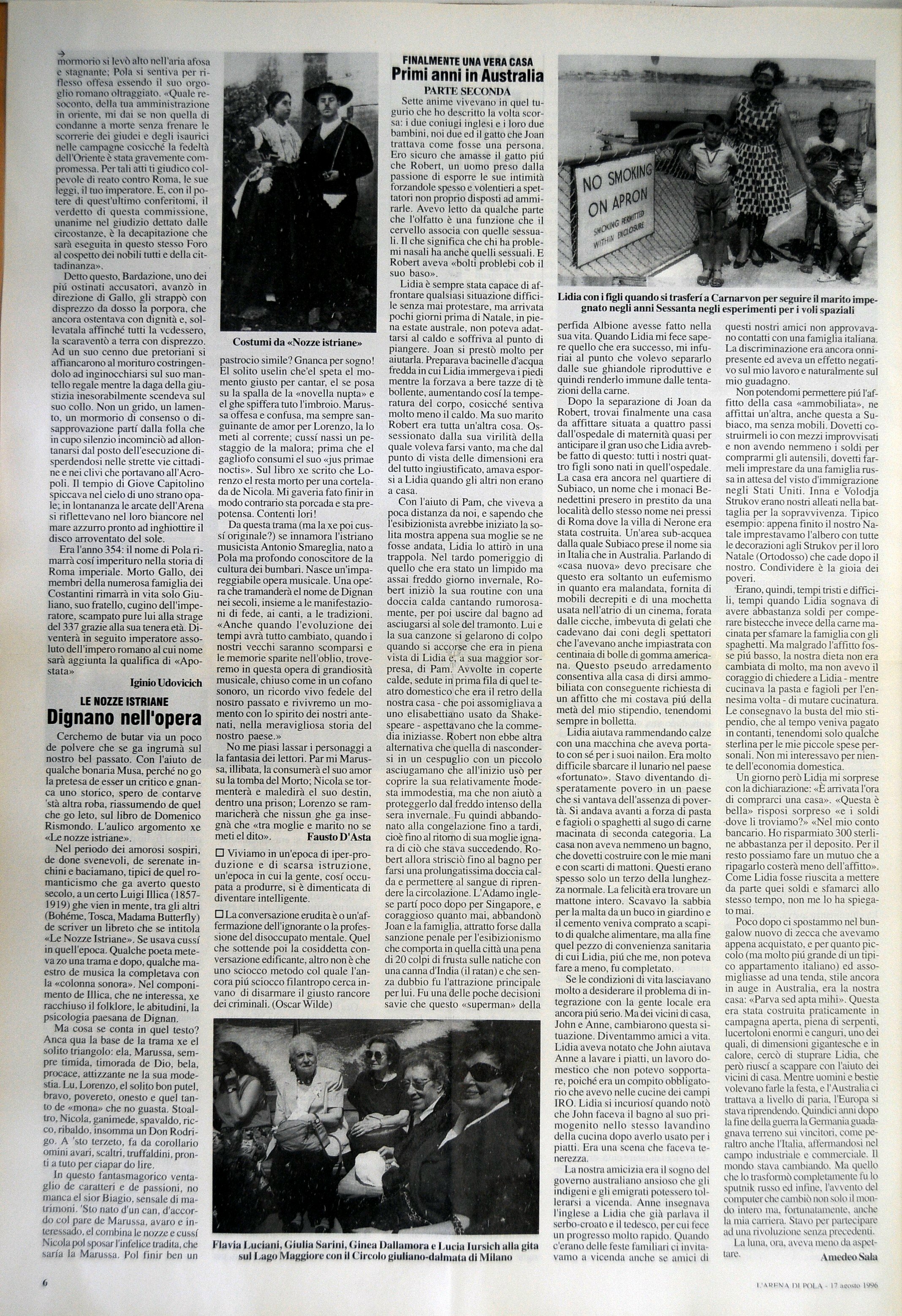 La nostra amicizia era il sogno del governo australiano ansioso che gli indigeni e gli emigrati potessero tollerarsi a vicenda. Anna insegnava inglese a Lidia che gia parlava serbo-croato e il tedesco, per cui fece un progresso molto rapido. Quando c'erano delle feste familiari ci invitavamo a vicenda anche se amici di questi nostri amici non approvavano contatti con una famiglia italiana. La discriminazione era ancora onnipresente ed aveva un effetto negativo sul mio lavoro e naturalmente sul mio guadagno.
