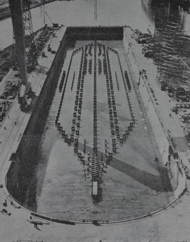 Didascalia:Sul nuovo scalo-bacino di Monfalcone è stata impostata la petroliera «Anita M.», gemella della «Caterina M.»