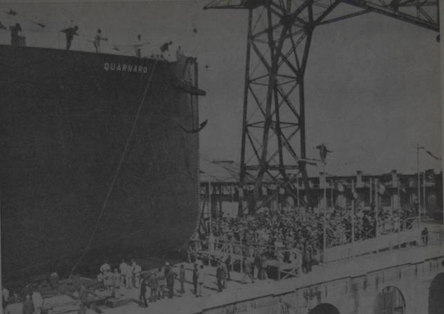 Il varo della Quarnaro in una foto del premiato stabilimento di Guglielmo Fiorini sul clivo (casa... 29/11/1972 |