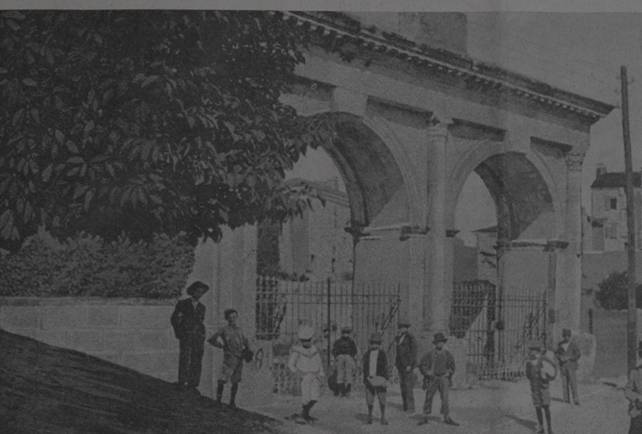 L'inferriata a Porta Gemine; la costruzione della porta risale al secondo secolo dopo Cristo; la sua decorazione è semplice: fregio nella cornice, tre mezze colonne lisce con capitelli corinzi lungo i due ampi archi esterni, gemelli (donde il nome della porta), per i quali si accedeva alla gradinata che conduceva al teatro del Campidoglio (al suo posto sorse poi il Castello); nel 1857 è stato posto un masso sopra la porta, con una iser;z+en, che parla della cestru_nonc d'una coniuttu,e, ;i denaro di Lucio Menacio Prisco, ricco cittadino...