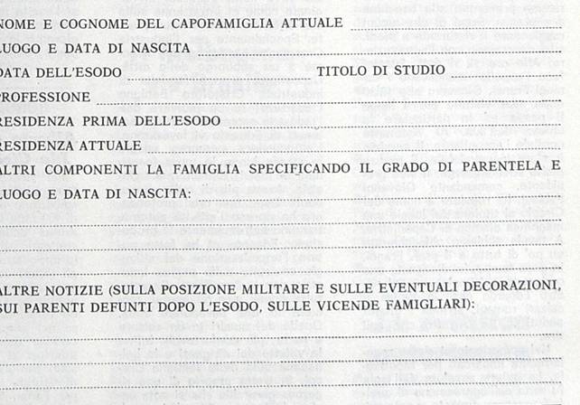Per contribuire all'anagrafe degli esuli da Polo clic il Libero Comune in esilio si propone di realizzare, inviateci i seguenti dati sulla scheda, o ricopiati se non si vuol ritagliare il giornale; la ricerca riguarda esclusivamente Pola.