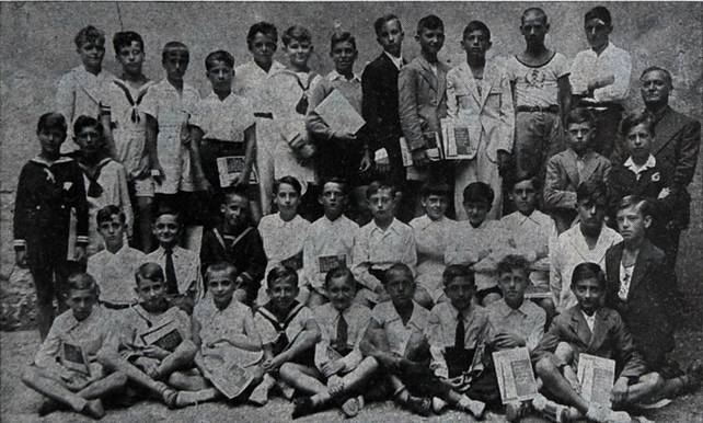La quinta classe elementare alla «Dante Alighieri» nell'anno scolastico 1934/35: in piedi li nono è Andrei e il decima Rodinis; nella fila di mezzo il secondo è Tarcisio Belci, il quarto Bradipi, Il settimo Mario Furlani, l'ottavo Zanini, l'ultimo Leopoldo Ghersi seduti Il quinto è Luigi Buranello, il settimo Angelo Danesi, l'ultimo Danilo Furlani; chi si riconosce o ritrova qualche volto conosciuto è pregato di scrivere; la foto ci è stata fornita da Mario Furlani