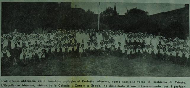 L'affettuoso abbraccio delle bambine profughe al Prefetto Memmo, tanto sensibile verso il... 16/09/1953 |