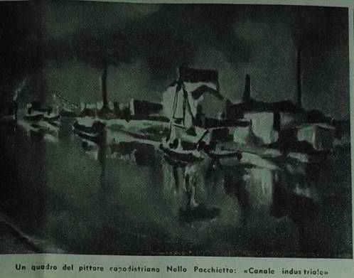 foto, didascalia: Un quadro del pittore co,todistriono Nello Pocchietto: «Canale industriale» 06/10/1954 |