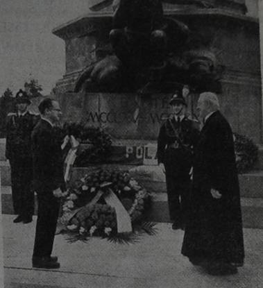 Don Felice e il Sindaco di Trento dott. Piccoli fotografati nei pressi del monumento o Dante