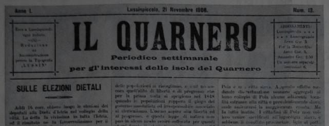 Esce a Lussinpiccolo nel mese di settembre 1908, editore e redattore responsabile Francesco Saxida, stampato presso la tipografia «Lussin» di Lussinpiccolo, un numero cent. 6