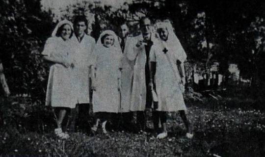 Didascalia: Ospedale Civile di Polo nel 1944: i tre medici sono nell'ordine Elvino Tomasini, Daino Bonelli e Vites; la prima delle assistenti sanitarie è una Sivilotti