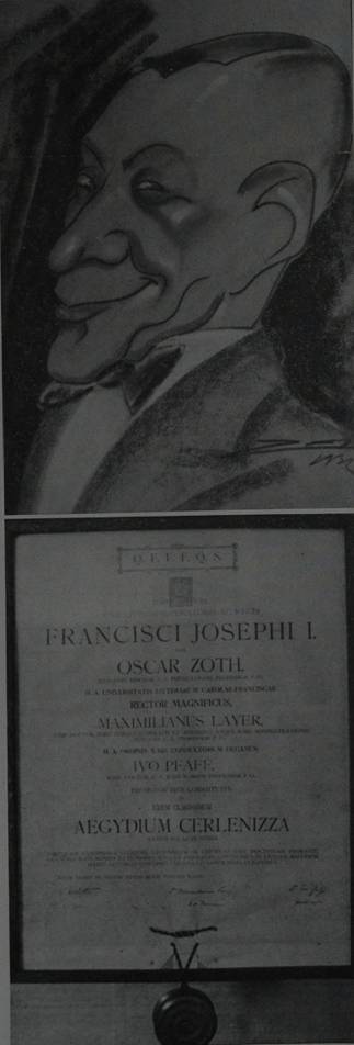 Ho il piacere di mandarvi le accluse copie fotografiche di due opere del nostro caro Gigi Vidris, che sono riuscito a ottenere in Australia per integrare la rassegna delle stesse da voi pubblicata. Una è la caricatura dell'avv. Egidio Cerlenizza e l'altra è uno schizzo di suo figlio Claudio da bambino fatto nel 1924. Unitamente a dette fotografie mi è stata mandata anche quella del diploma di laurea conferito nel 1913 al predetto avvocato all'Università austriaca da lui frequentata. Non so se possa...
