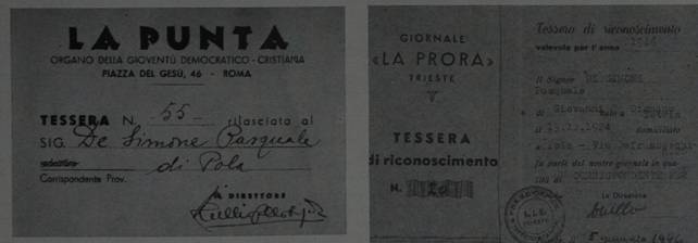 Il tesserino del periodico d.c. di Trieste, diretto da Millo, che poi per lunghi anni fu a capo dell'ufficio di corrispondenza dell'Ansa; in redazione Marini