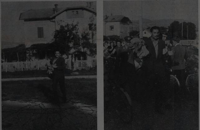 Didascalia: Una delle fughe clamorose con il salto del filo spinato nel tratto tra i piazzali Monte Santo e San Gabriele; tra il 1947 e il 1955 la città accolse un intenso turismo domenicale per vedere nella realtà — come avviene ancora a Berlino per il muro —la cortina di ferro divisoria tra l'occidente e i Paesi comunisti dell'Est impenetrabile; sul piazzale della stazione ferroviaria Transalpina una antica, caratteristica trattoria fu assediata dalla vociante clientela di curiosi, che arrivavano anche in comitiva con i pullman, e...