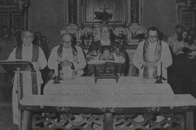 Sacerdoti istriani celebrano la messa a Udine per i congressisti dell'Anvgd: padre Rocchi, don... 01/08/1981