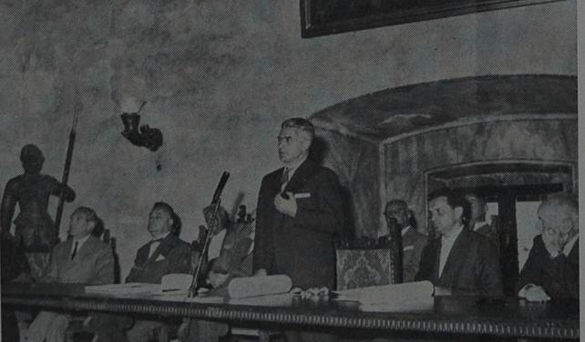 Didascalia: II sindaco Ferruccio Bernardis durante una manifestazione al Castello
