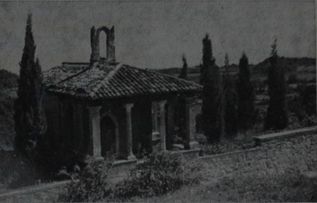 Didascalia: Chiesetta dedicata a Albona a Santa Maria Maddalena sulla strada per San Lorenzo (sullo sfondo le isole del Quarnero)