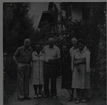 Gianni Polonio (Tronco o Baffo), mia moglie Ofelia, io, la moglie di Gianni, Guglielmo Armentani e sua moglie nel giardino di casa mia a Camporosso dopo una «gnocada».
