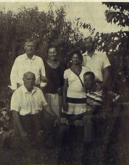 Per la prima volta in Italia dalla lontana emigrazione in Argentina dopo l'esodo da Pola, Nereo Perusco con la moglie Felisa (con radici torinesi) ha trascorso una meravigliosa giornata a Cervignano del Friuli in casa di Odino Banino e della simpaticissima moglie Neda, assieme ad altri amici; nella foto in piedi Tullio Balde, Neda, Felisa e Odino; inginocchiati Bruno