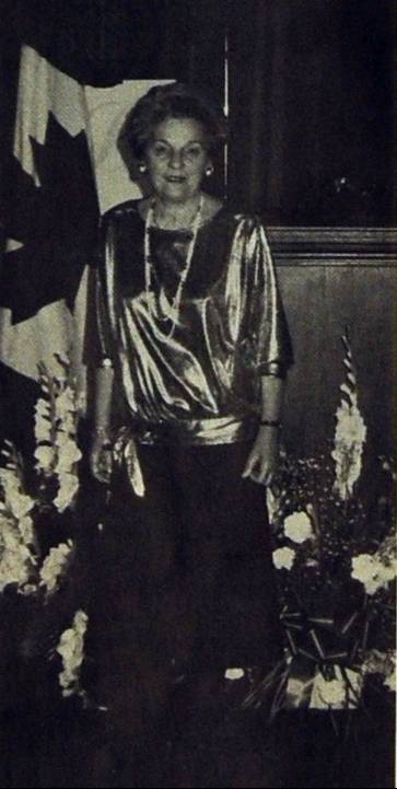 Meri Vidris accanto alla bandiera canadese durante il raduno di Toronto cui ha partecipato da Clifton nel New Jerseà assieme al marito Aligi e ad una comitiva di 150 istriani da New York