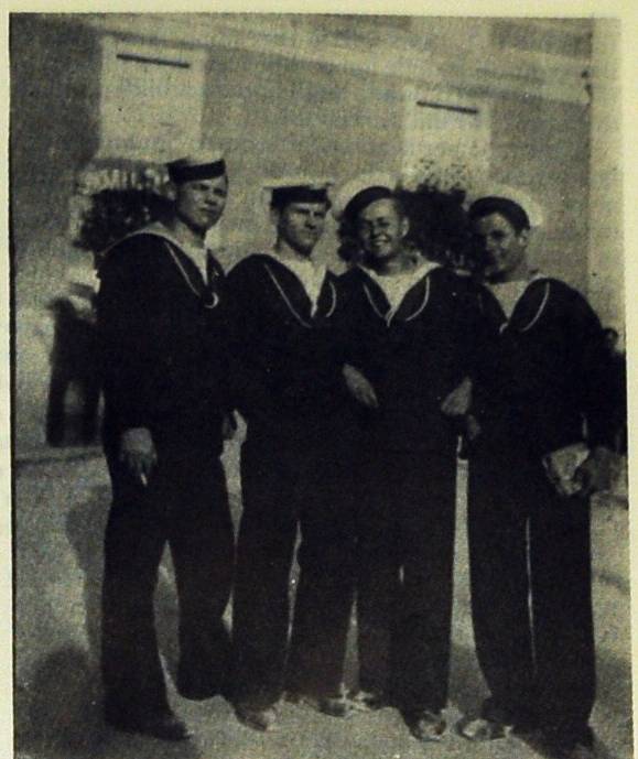 Didascalia: Taranto, 31 maggio 1941: Rudi Dorcich, Marcello Stupar, Francesco Stoppari e Ettore Pilat, .marinai de tera insieme ad affrontare i giorni di guerra