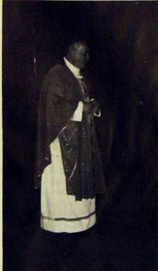 Mons. Ravignani durante l’omelia, nella chiesa di San Marco dove, andata via la corrente elettrica a causa di un violento temporale, la messa è stata officiata al fumo di ceri in una atmosfera catacombale.