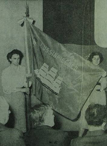 Didascalia:La bandiera di Lussinpiccolo sostenuta da graziose mori)