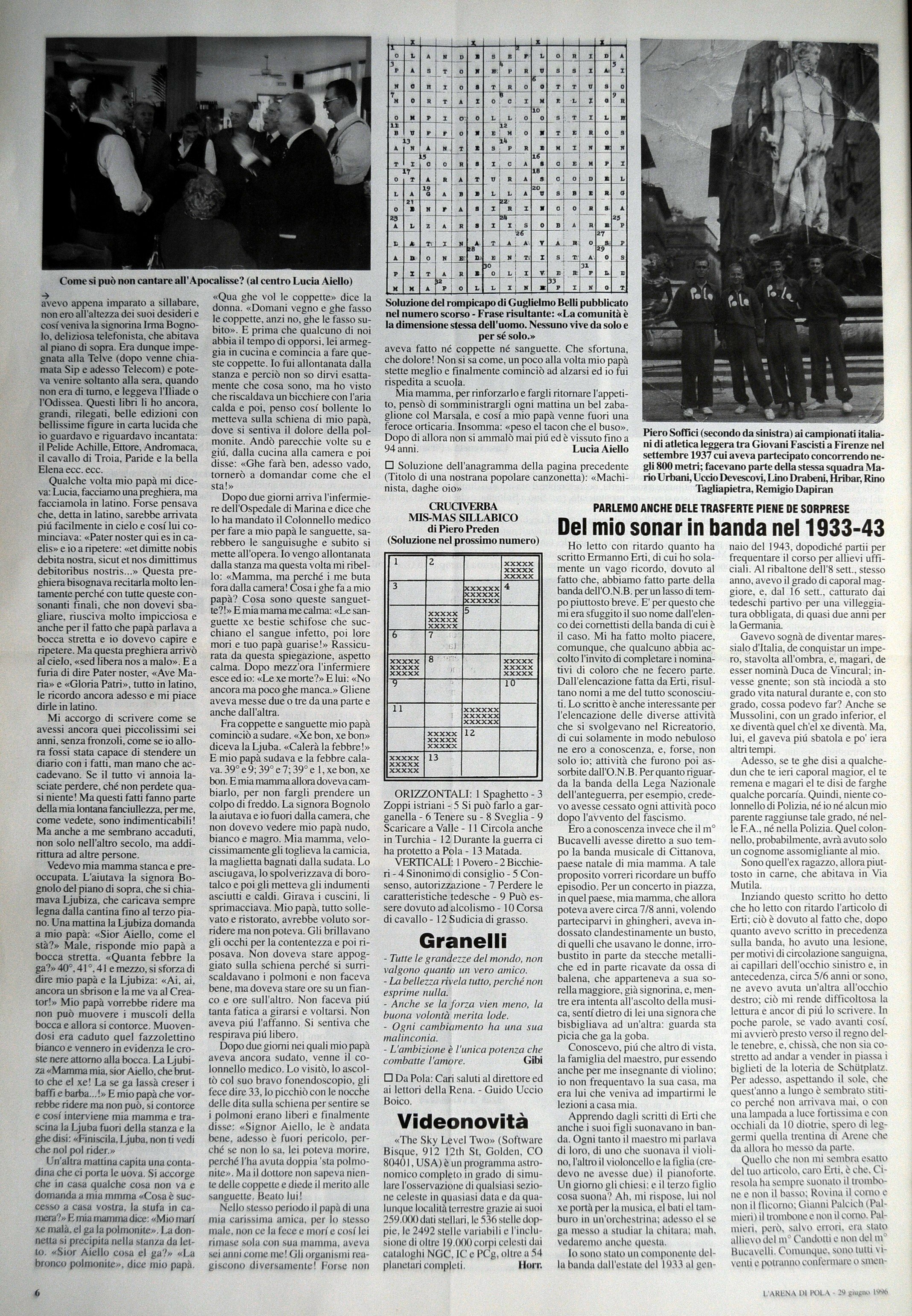 ORIZZONTALI: I Spaghetto 3 Zoppi istriani 5 Si pub fa& a garganella รจ Tenere su 8 Sveglia 9 Scaricare a Valle 11 Circola anche in Turchia 12 Durante la guerra ci ha protetto a Pola 13 Matada. VERTICALL I Povero 2 Bicchieri 4 Sinonimo di consiglio 5 Consenso, autorizzazione 7 Perdere le caratteristiche tedesche 9 Put es-sere dovuto ad alcolismo 10 Corsa di cavallo 12 Sudicia di grasso