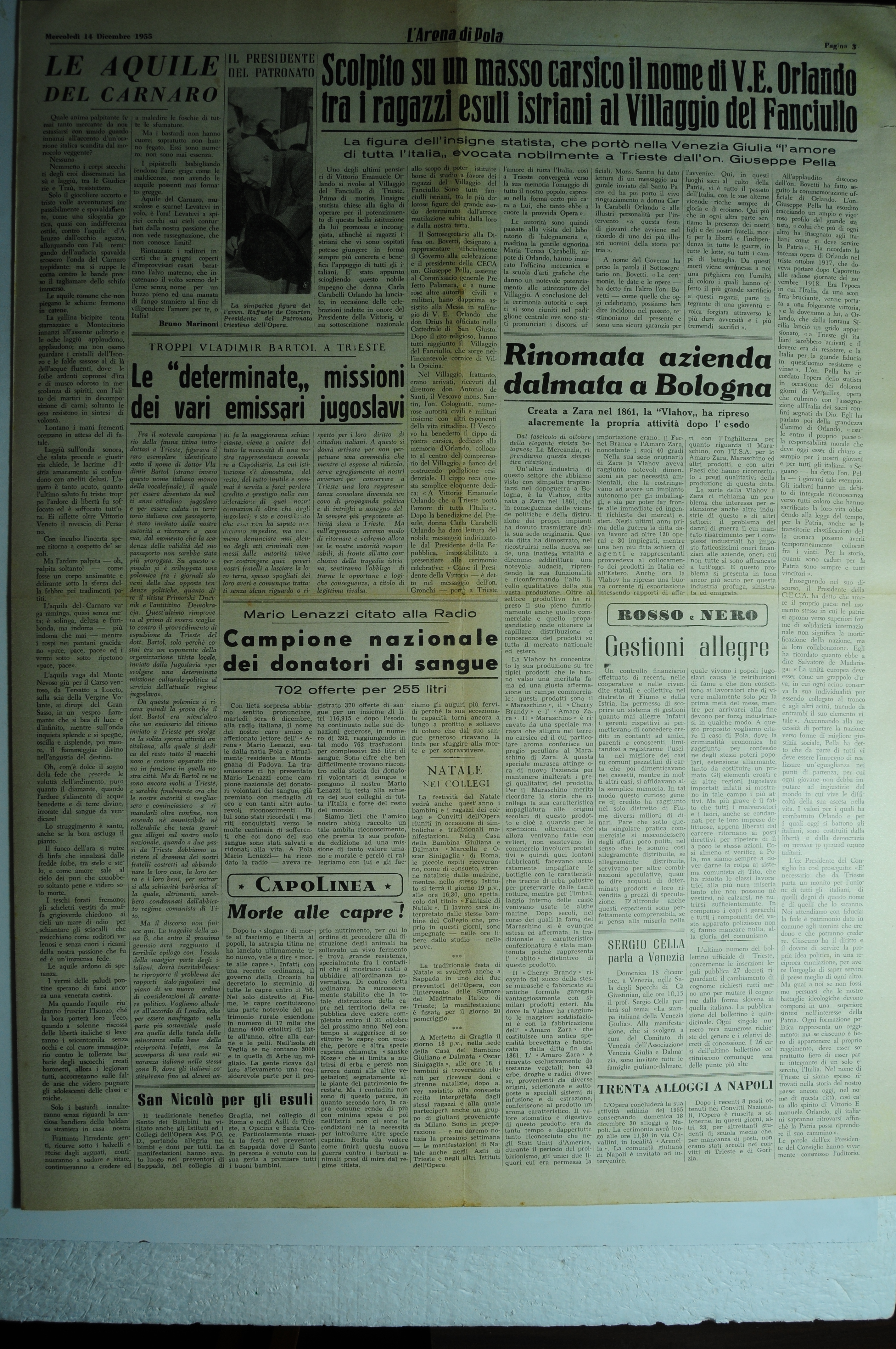 IL PRESIDENTE DEL PATRONATO foto, didascalia: La simpatica figura del l'alani. Raffaele de Courten, Presidente del Patronato triestino dell'Opera.