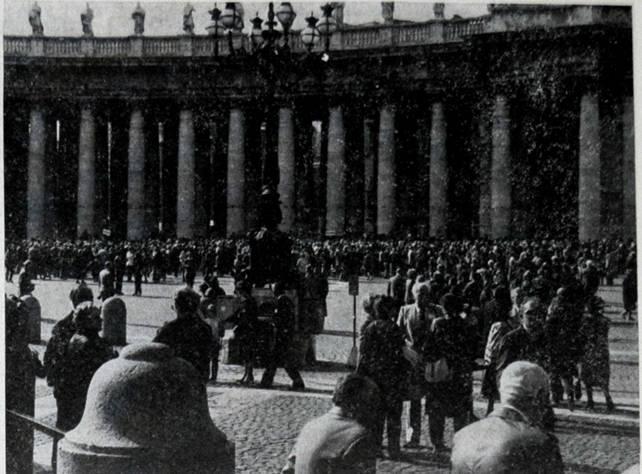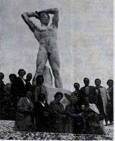 Allo stadio dei marmi a Roma accanto alla statua che rappresenta Pola un gruppo di esuli partecipanti al raduno dei 26 ottobre per l'udienza del Papa (foto di Otti Bias)