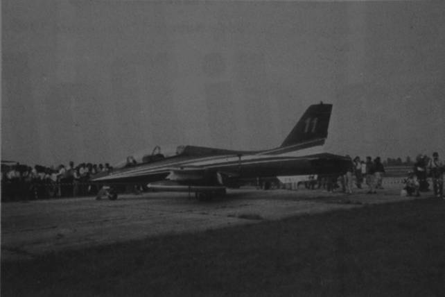 Un Aermacchi 339 della pattuglia acrobatica nazionale esposto all'aeroporto di Rivolto nel corso della manifestazione aviatoria a celebrazione dei trent'anni di vita del prestigioso complesso dell'aeronautica militare italiana; nella prima fase, per molti anni, la pattuglia adoperò il favoloso Fiat G 91