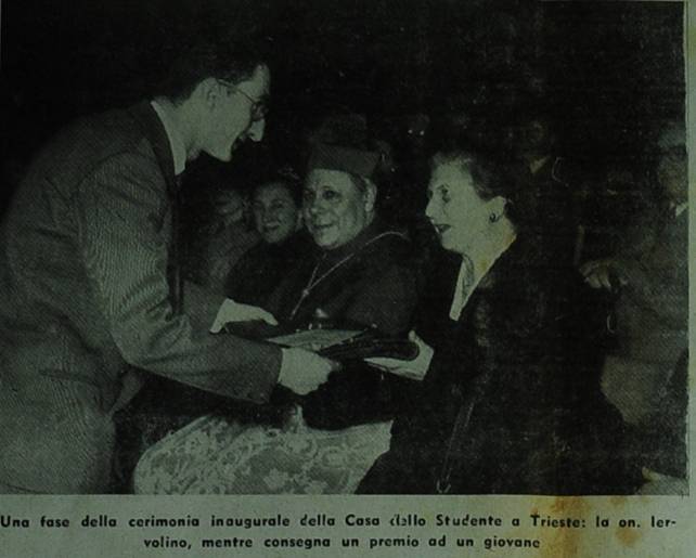 foto, didascali: Una fase della cerimonia inaugurale della Casa dallo Studente a Trieste: la on.... 22/12/1954 |