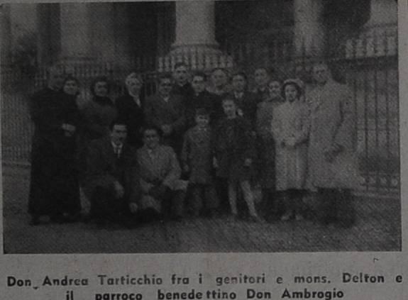 Alla presenti degli Abati don Vannucci e don Raffaele Del Papa., M mons. Giuseppe Delton, nella patriarcale basilica di S. Paolo in Roma, il 18 gennaio è stato consacralo novello Ministro di Dio il profugo da Dignano don Andrea Tarticchio Erano presenti alla commovente cerimonia