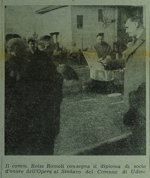-foto Il Comm. Reiss Romoli consegna il diploma di socio d'onore dell'Opera al Sindaco del Comune... 02/12/1953 |