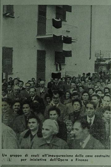 foto, didascalia: Un gruppo di esuli all'inaugurazione delle case costruite per iniziativa dell'Opera a Firenze
