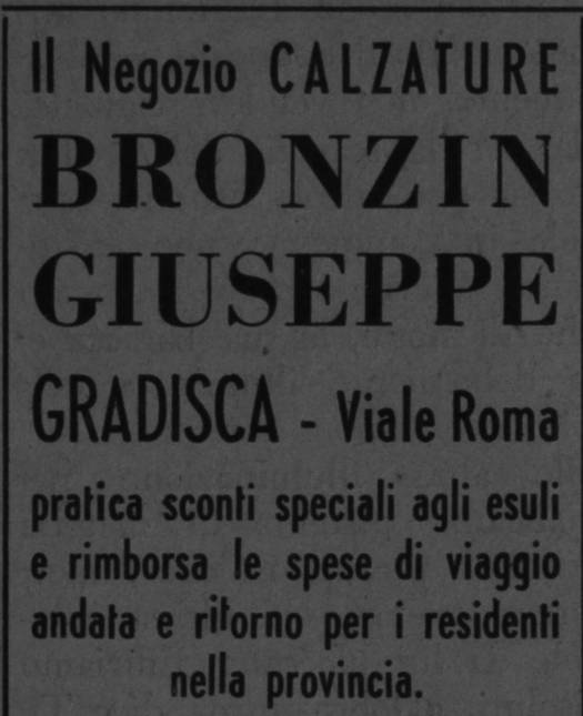 Reclame Bronzin Giuseppe 27/07/1949 |