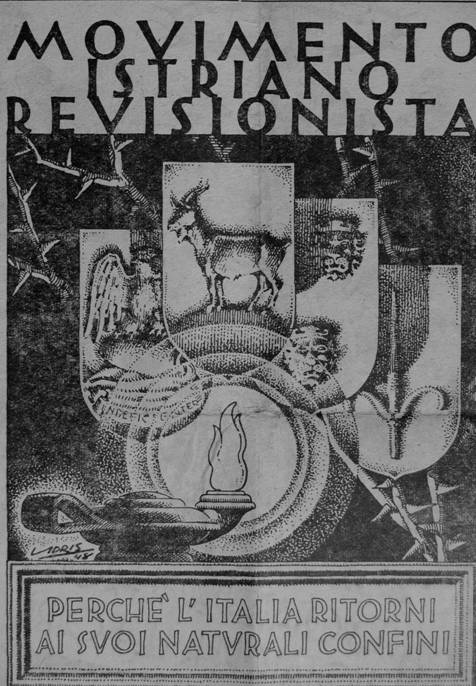 Didascalia:Ed anche il concorso per il disegno è terminato e la tessera del MIR sta per essere varata. E' stato prescelto il bozzetto di Gigi Vidris, ché qui riproduciamo, il quale sintetizza in maniera mirabile la tragedia e le aspirazioni di tutti i giuliani